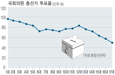 이 정도만 해도 낮아지는 투표율이 왜 문제가 되는지 느낄 수 있을 것이다.