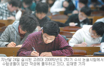 지난달 24일 치른 고려대와 연세대의 2학기 수시모집 논술시험은 두 대학이 그동안 발표한 논술 예시문항이나 모의고사 유형과 큰 차이를 보이지 않았다. 이런 경향은 올해 정시모집에서도 이어지면서 각 대학의 고유한 논술 유형으로 자리 잡을 것으로 전망된다.